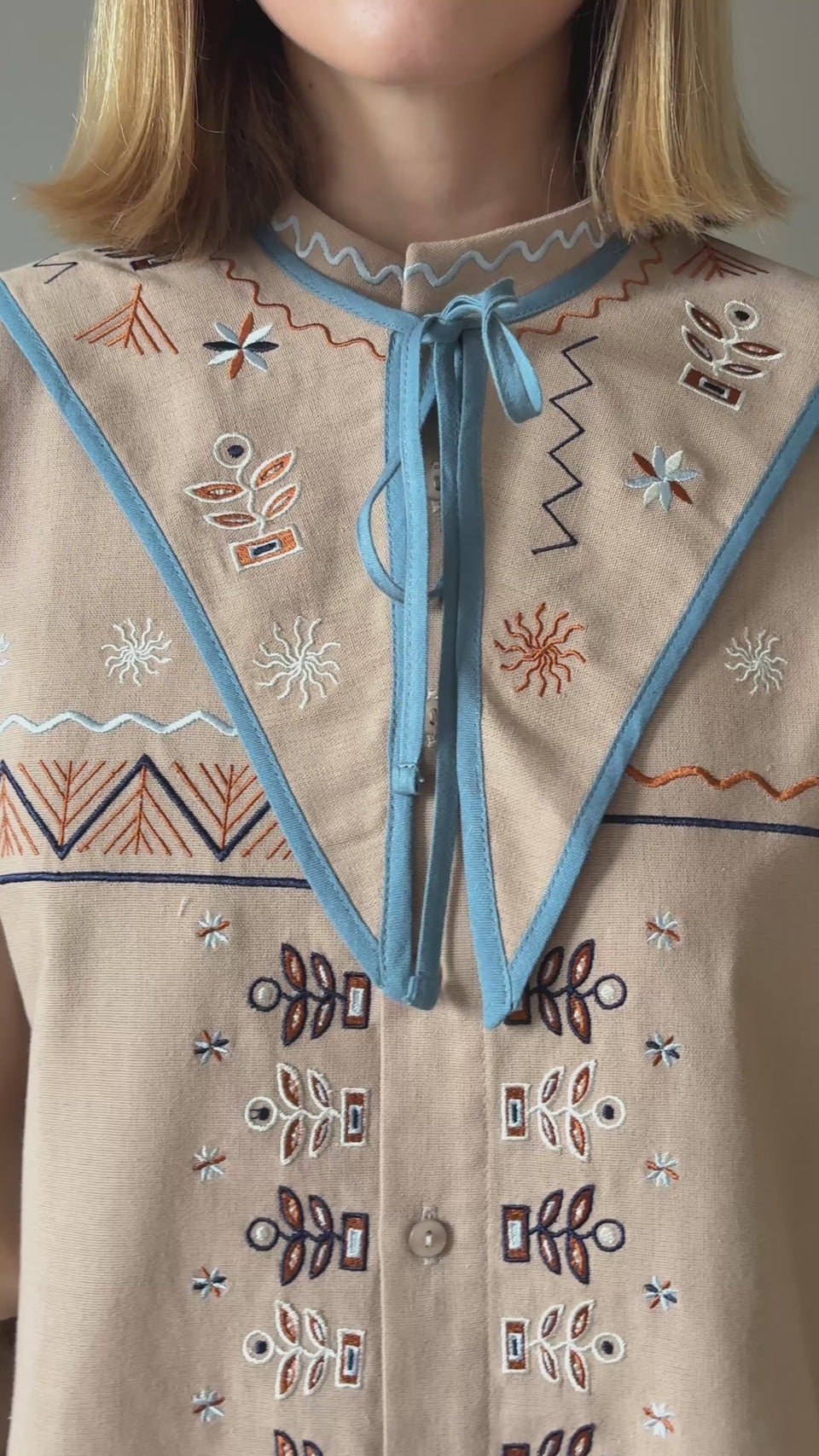 Комірець "Луги" з вишивкою блакитний | Hrushenka
