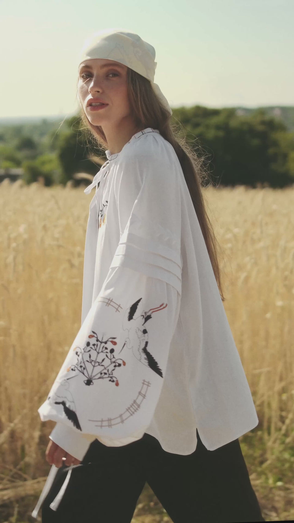 Ця біла вишиванка втілює силу цього символу. Лелека у вишивці — як оберіг, що зберігає мир, любов і зв'язок поколінь. Вишивка поєднує традиційні мотиви й сучасний крій, створюючи одяг із сенсом і характером.