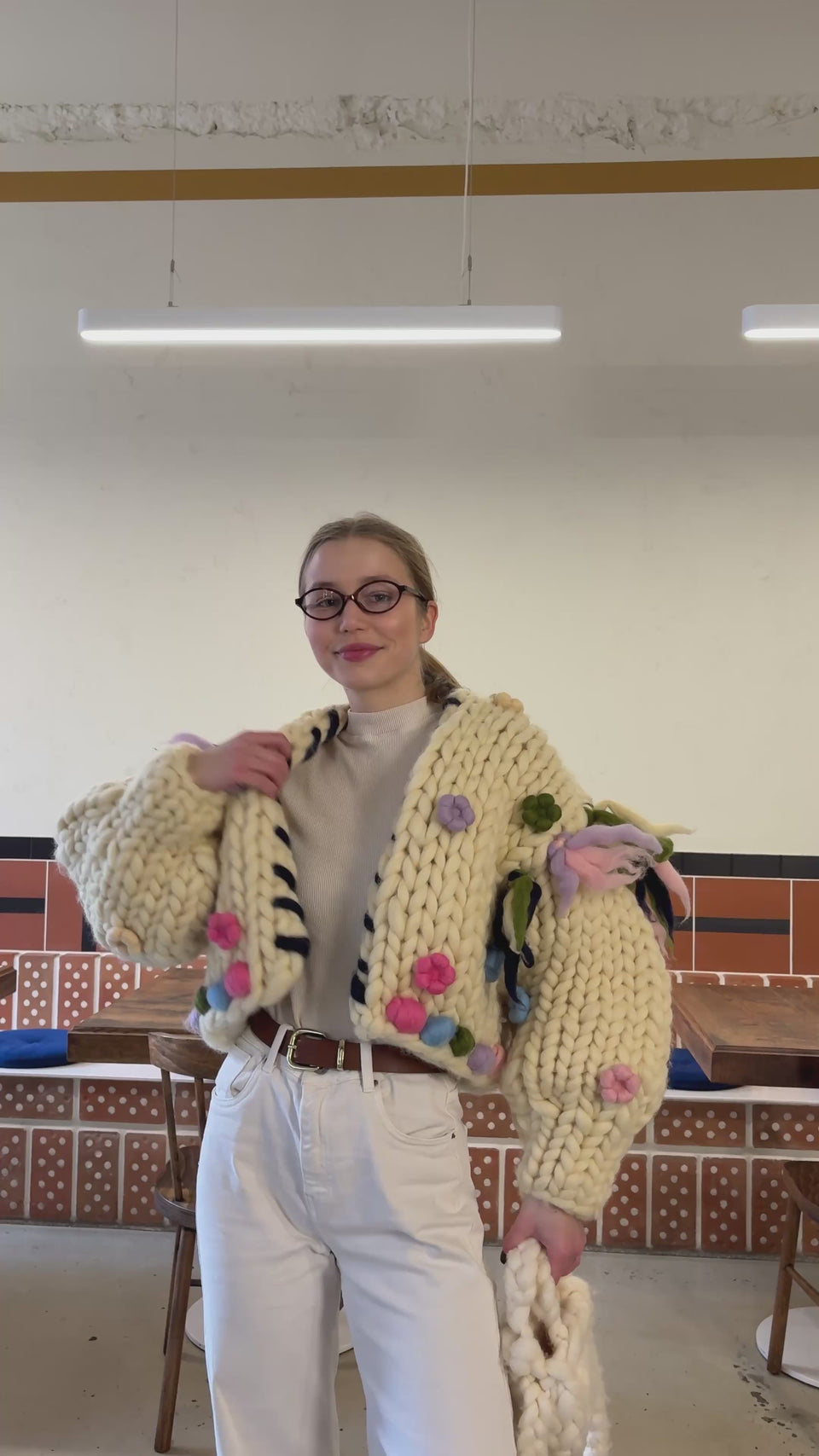 Кардиган “Цвітіння душі” з вовни мериноса - не просто частина гардеробу, а справжній арт-об'єкт, який відображає глибину української культури і традицій, присвячений творчості Ганни Собачко-Шостак. Техніка в’язання вручну та використання натуральної шерсті робить кожен кардиган унікальним, а ніжні кольори і деталі, натхненні природою та мистецтвом, підкреслюють елегантність та індивідуальність його власниці.