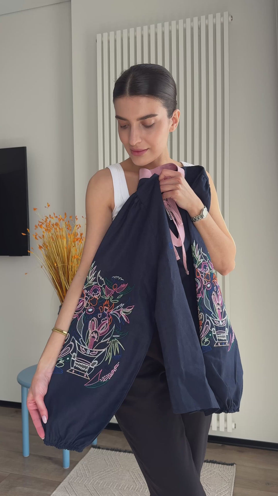 This Women's embroidery is a true work of art, inspired by the work of the same name by the famous Ukrainian artist Anna Sobachko-Shostak "New Flowers". The artist, who works in the genre of folk decorative graphics, conveys the harmony between tradition and modernity in her works. In the painting "New Flowers", she explores the theme of rebirth and renewal, using floral motifs that symbolize hope, growth and a new beginning.