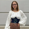 Жіночий корсет з вишивкою "Птахи" синій | Hrushenka