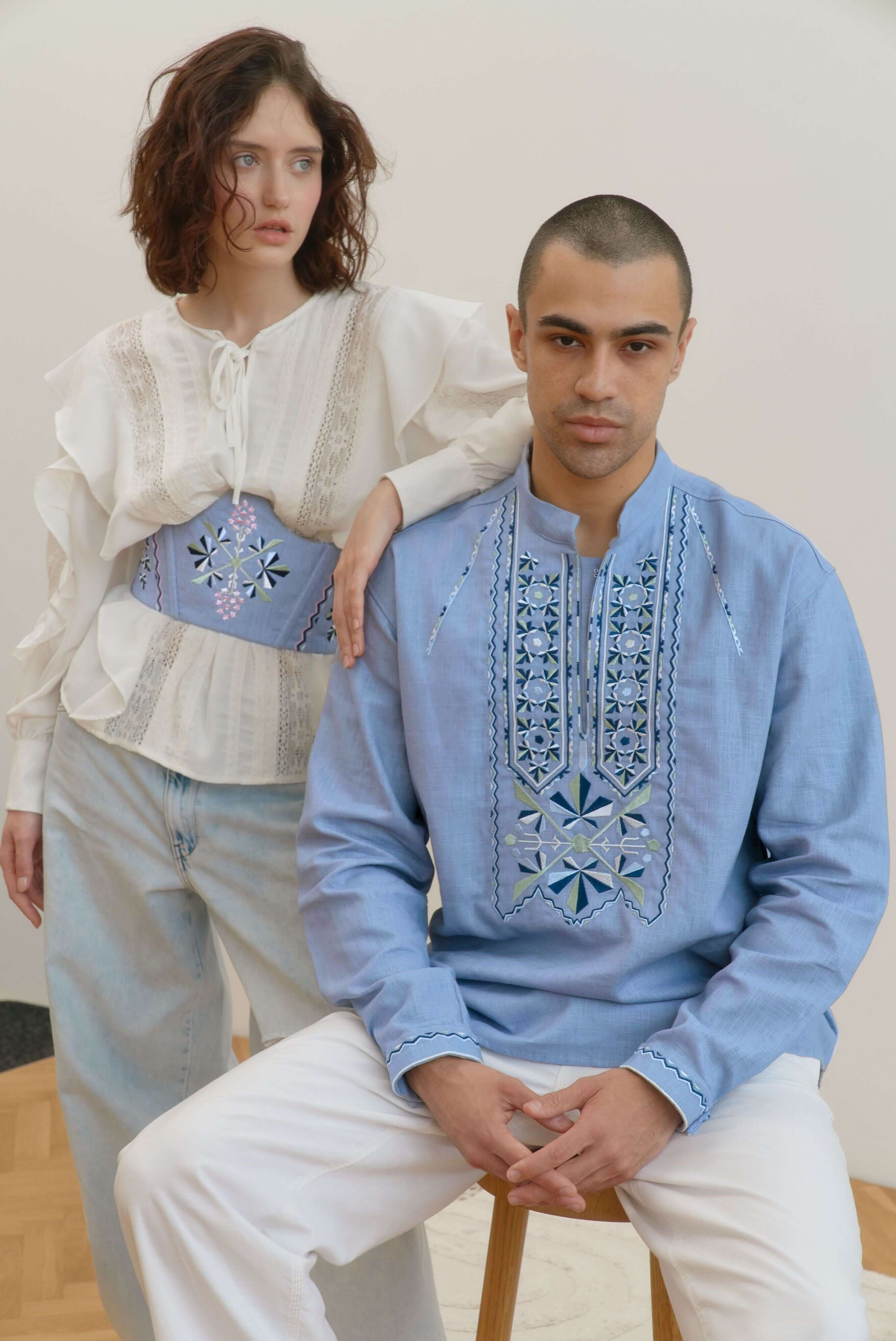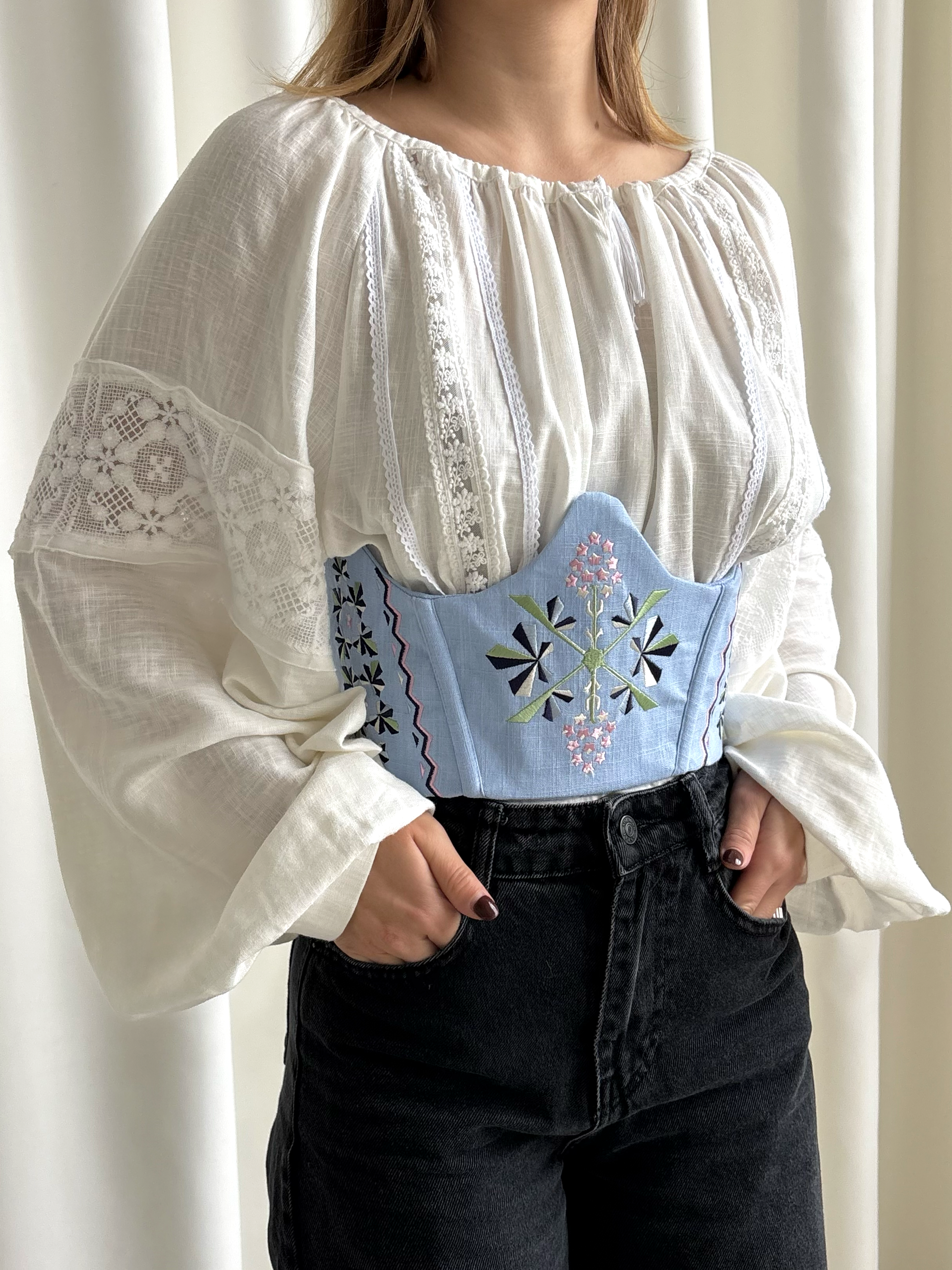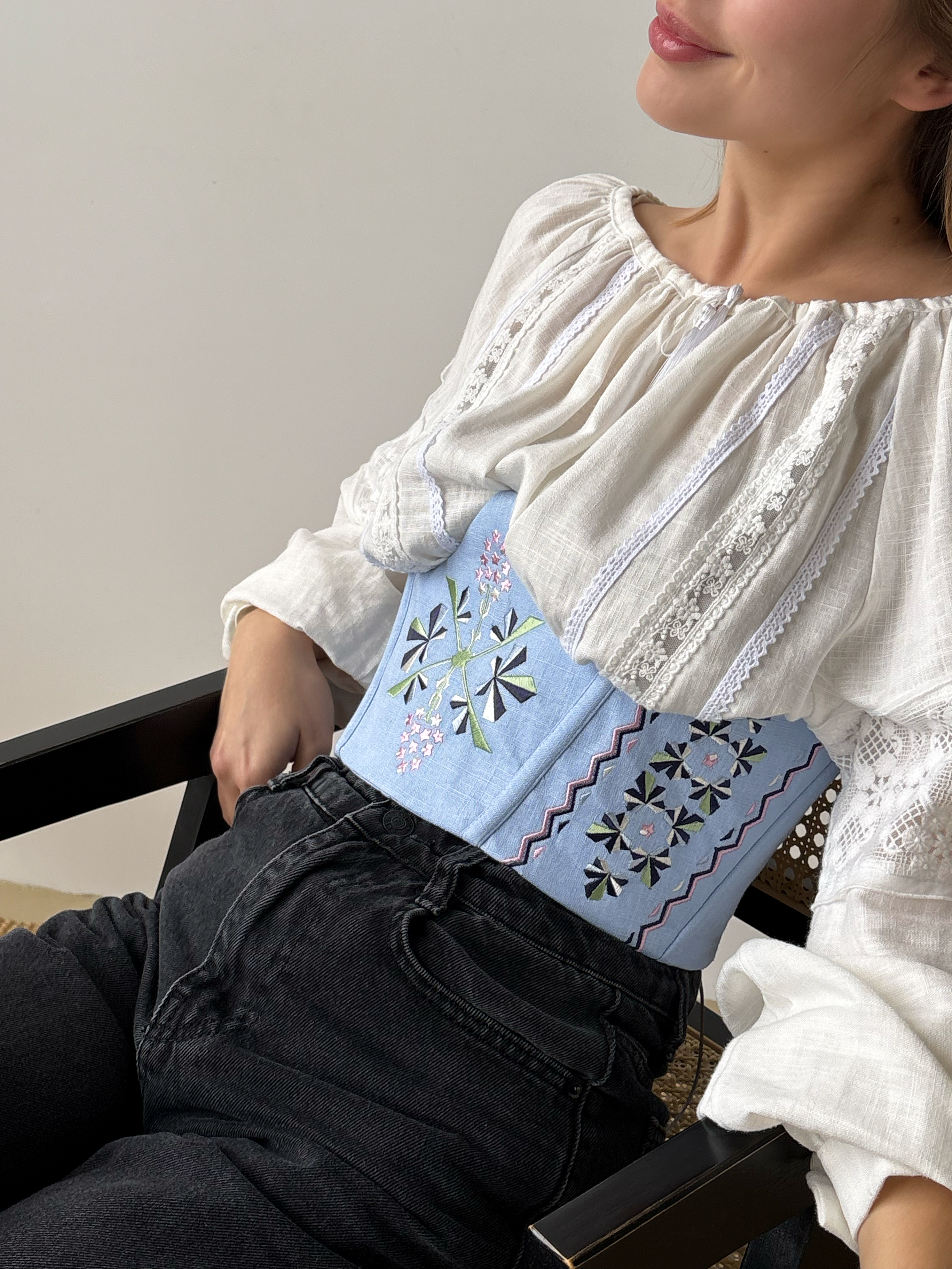 Жіночий корсет з вишивкою "Каштан" світло-блакитний | Hrushenka