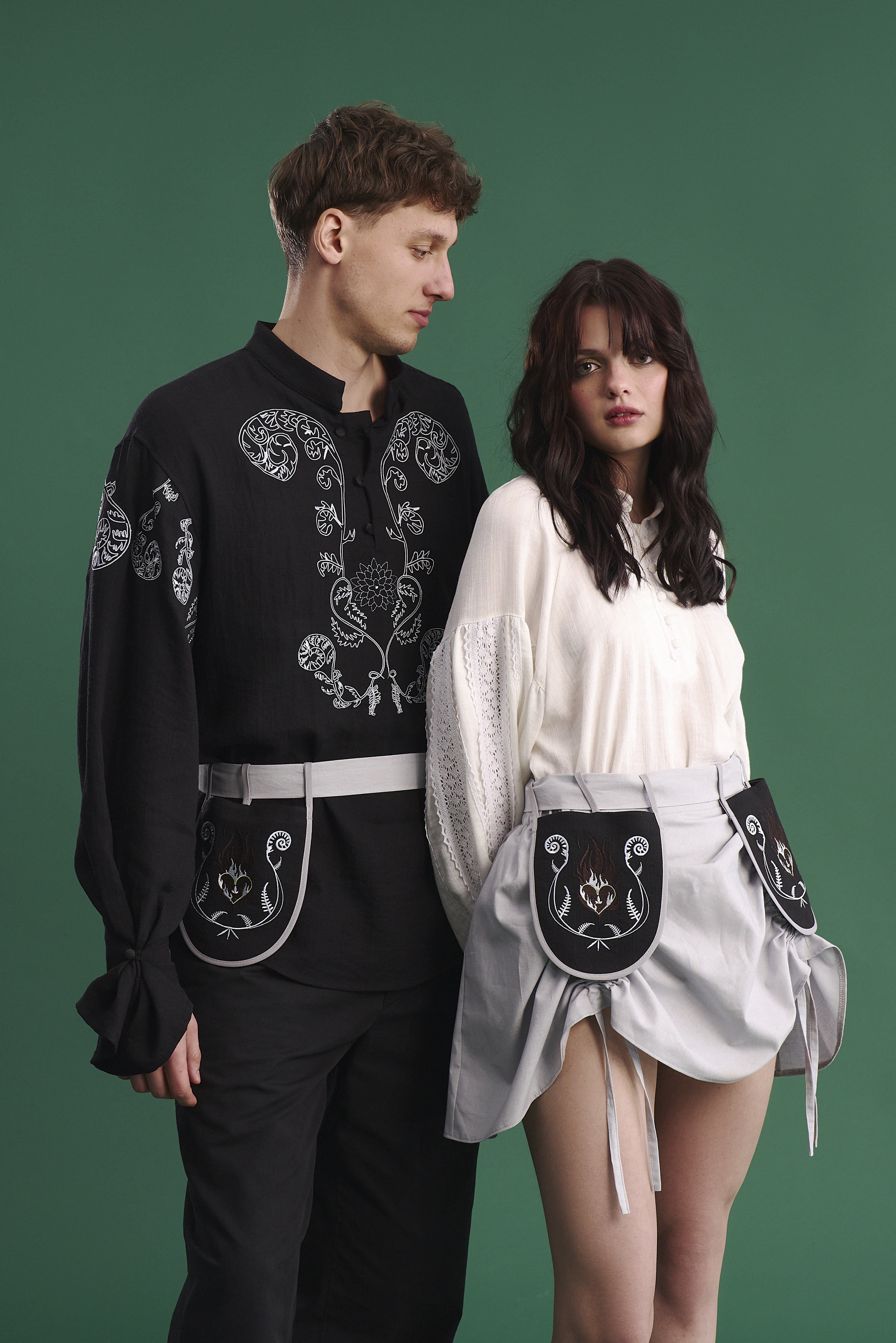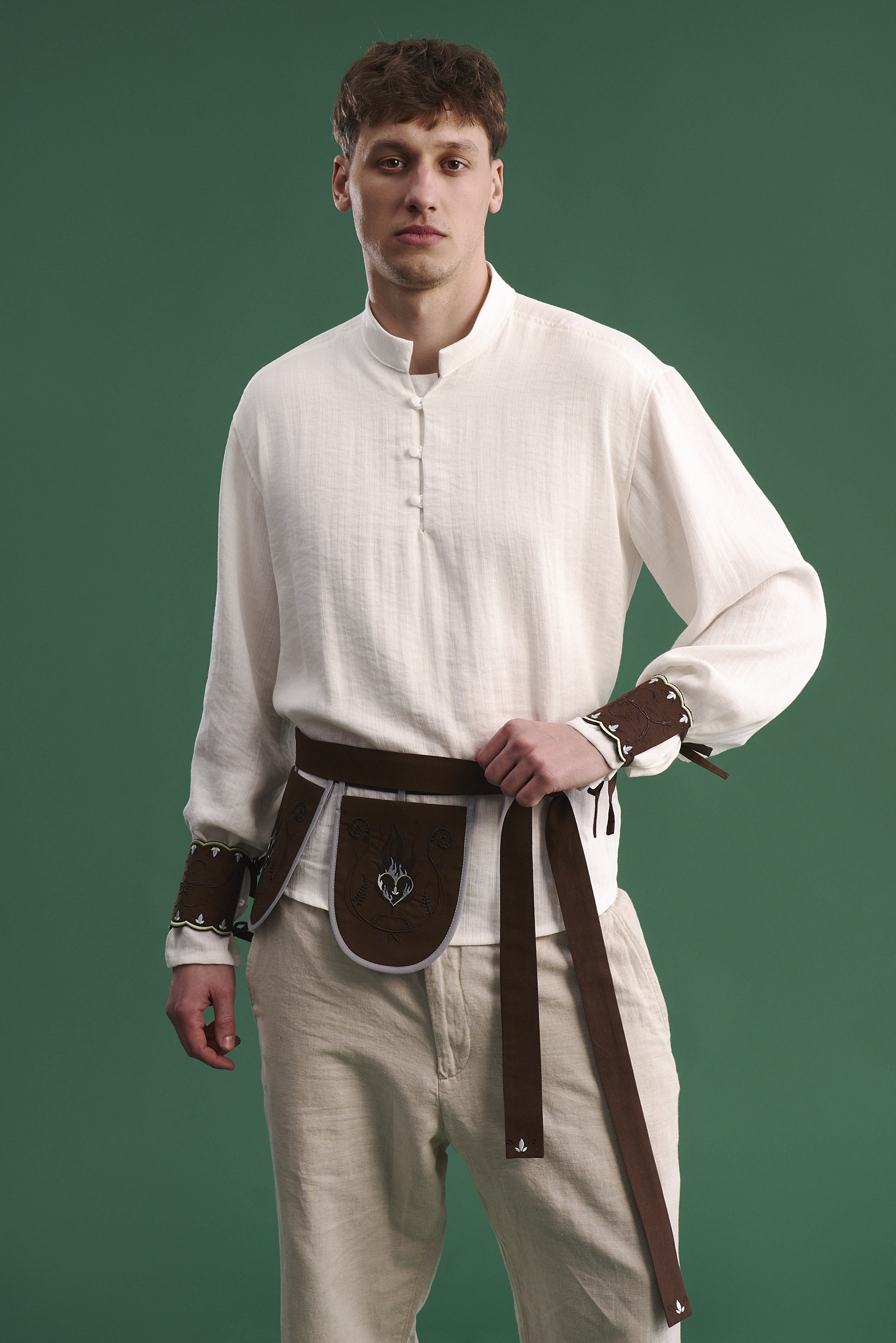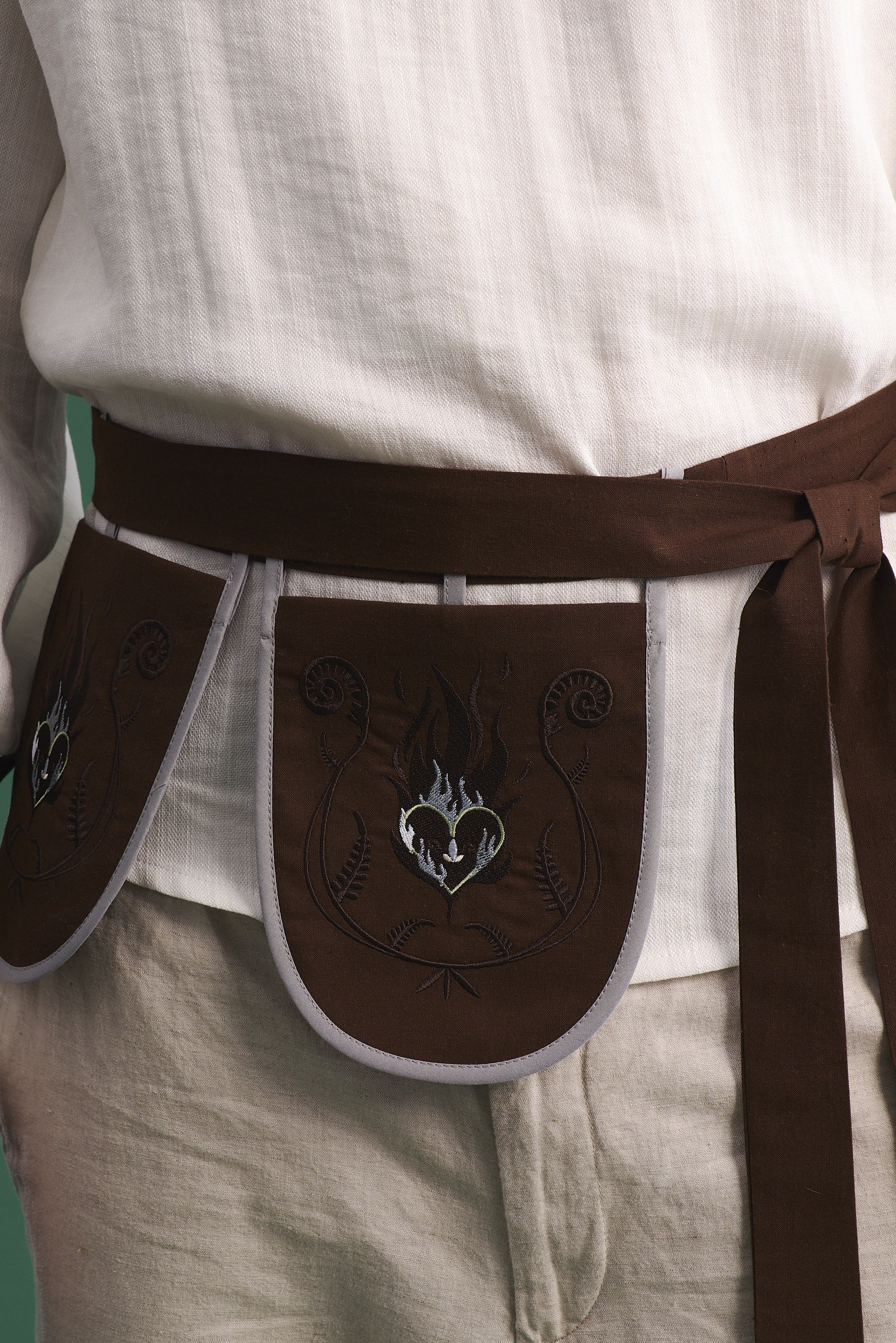 Пояс з кишеньками “Зібрані іскри” — акцентний аксесуар, який поєднує естетику, функціональність і глибокий зміст. Дизайн натхненний символікою світла, тепла та внутрішньої сили, що передається через вишиті орнаменти та декоративні елементи.