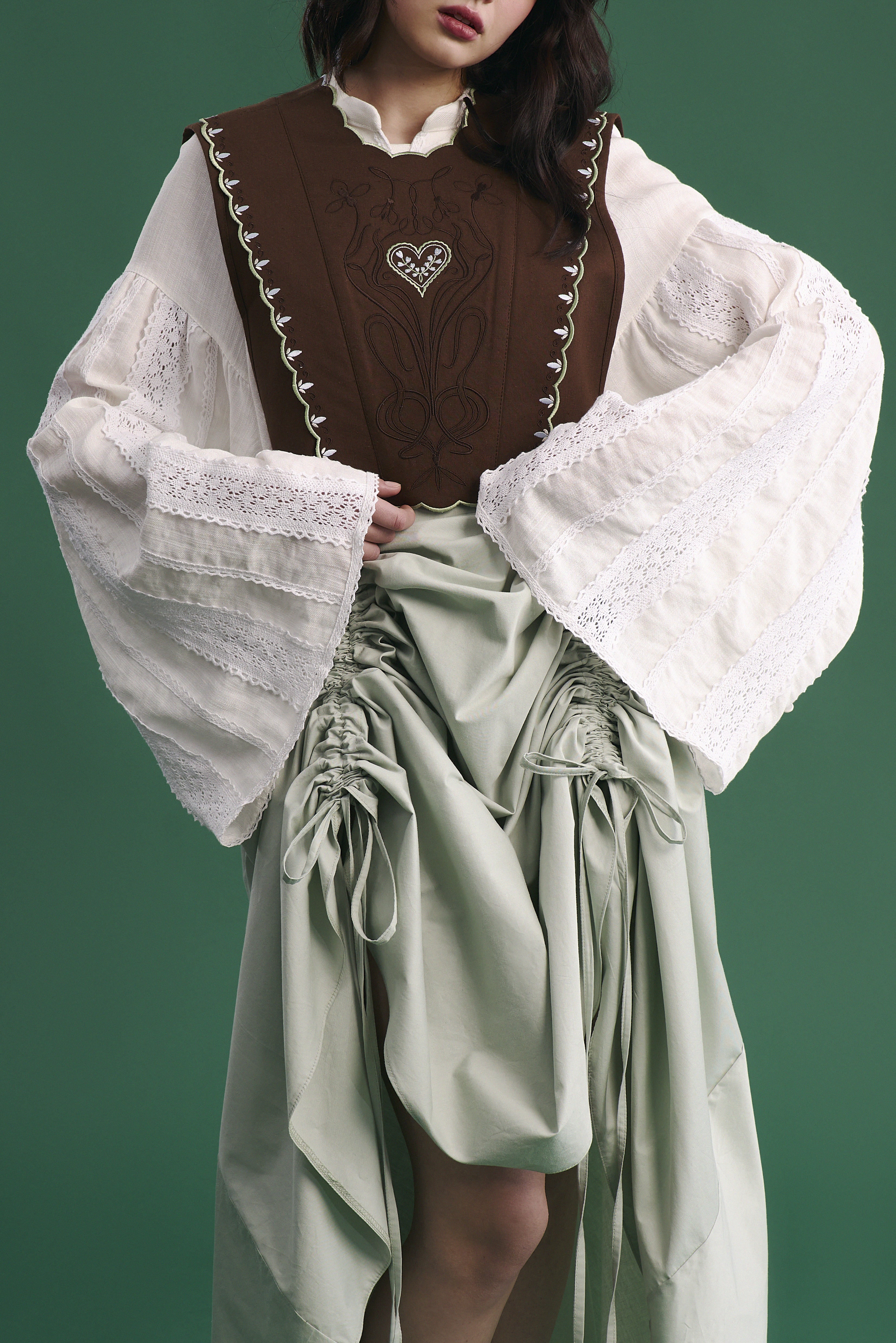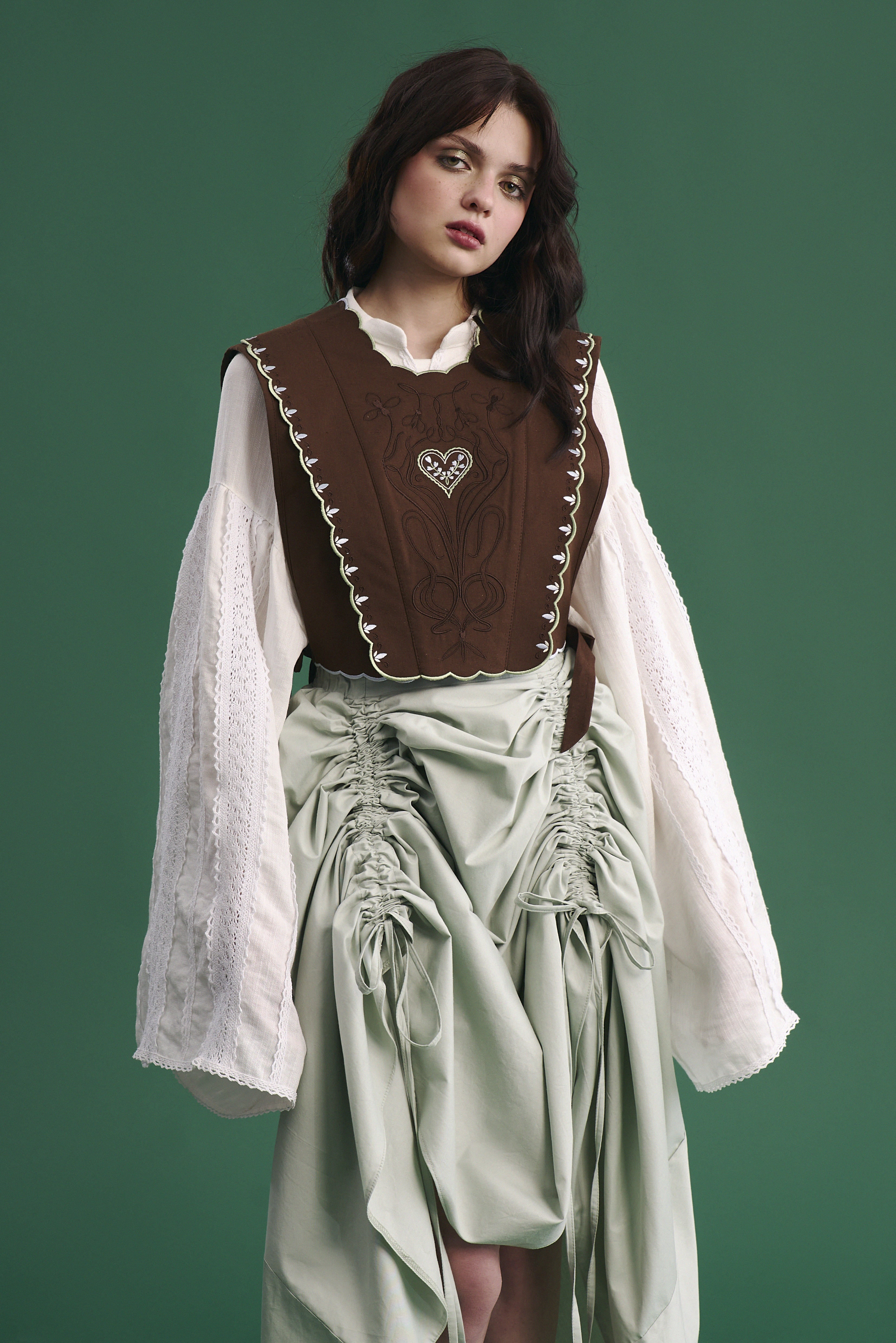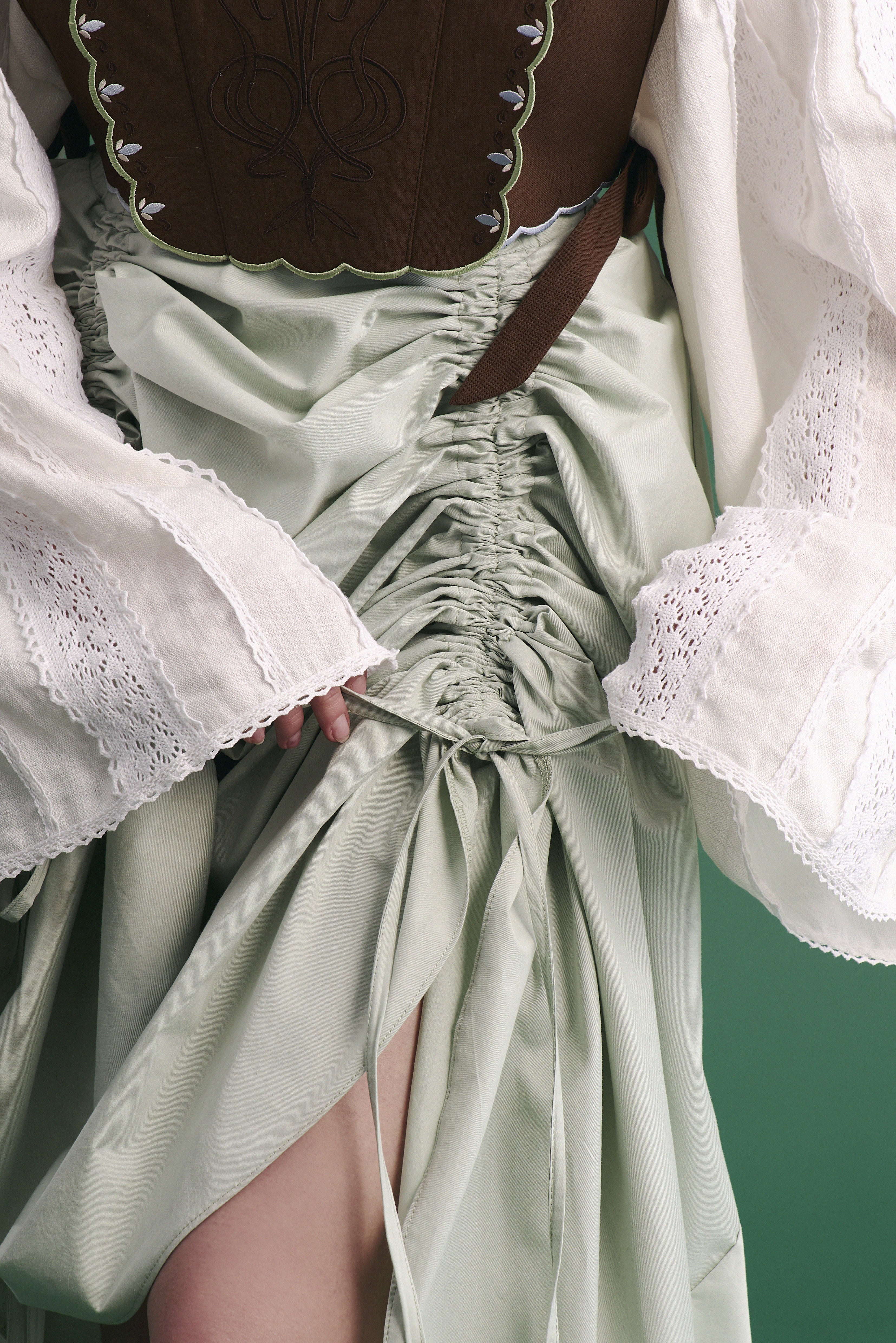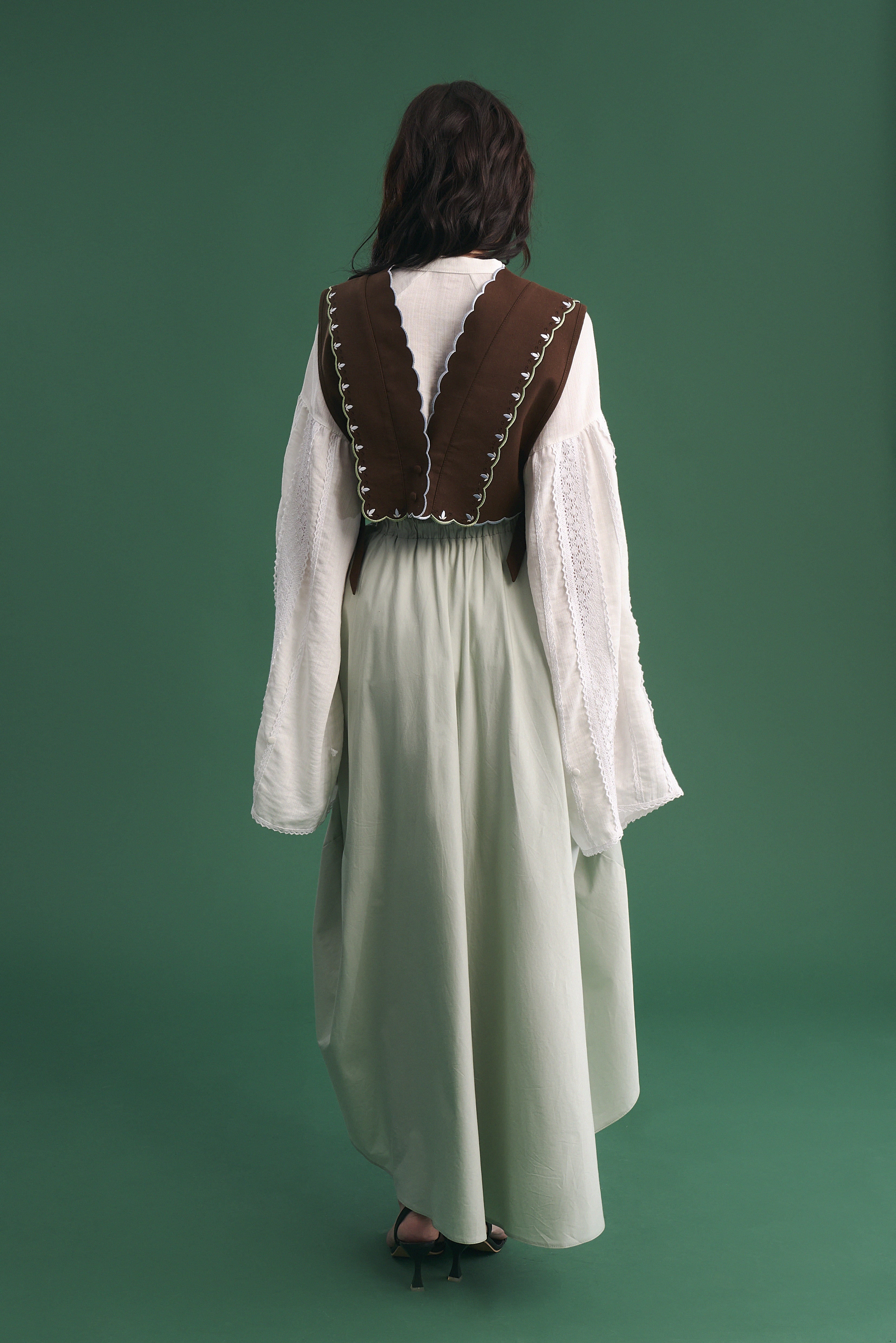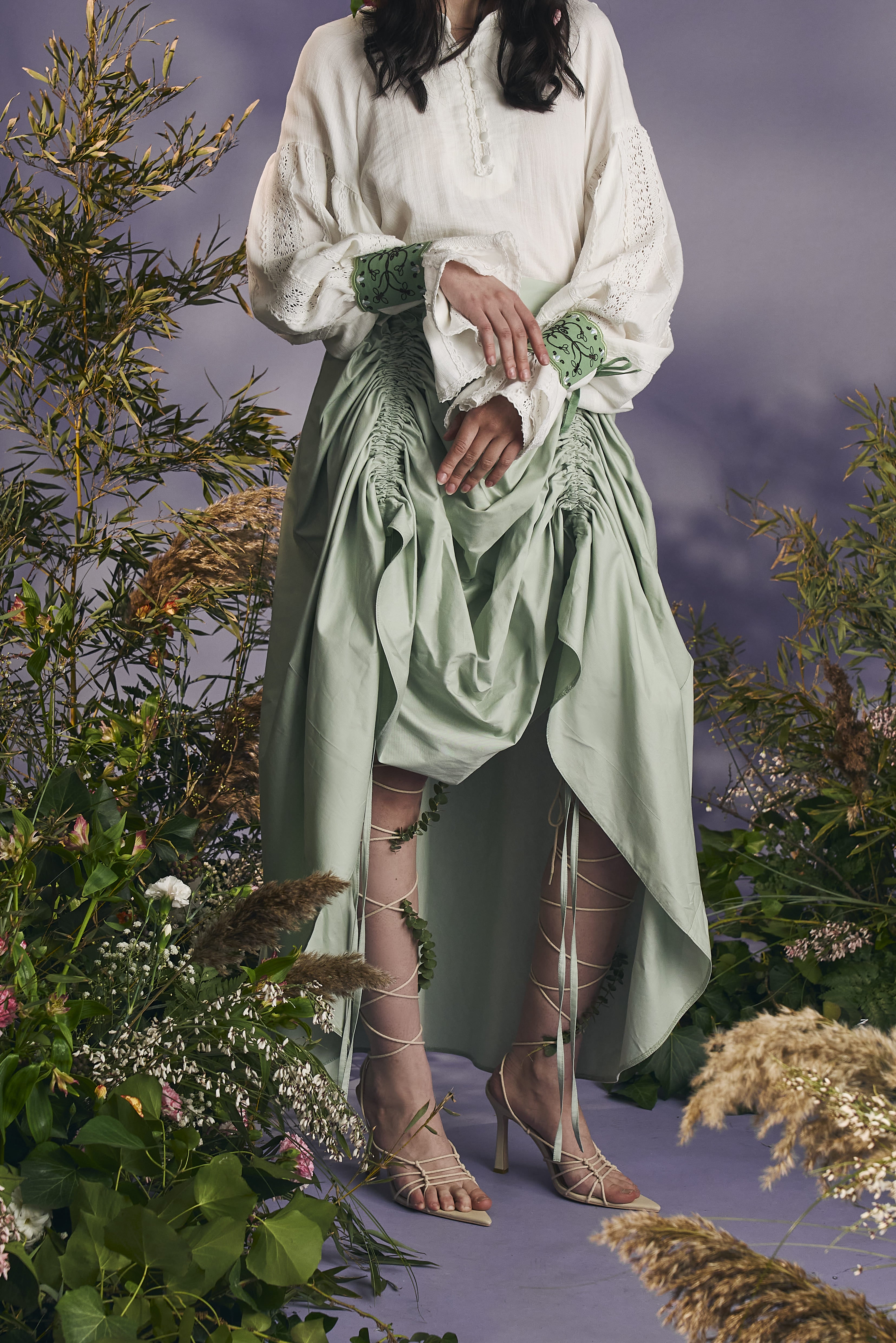 Спідниця максі з кулісками фісташкова | Hrushenka