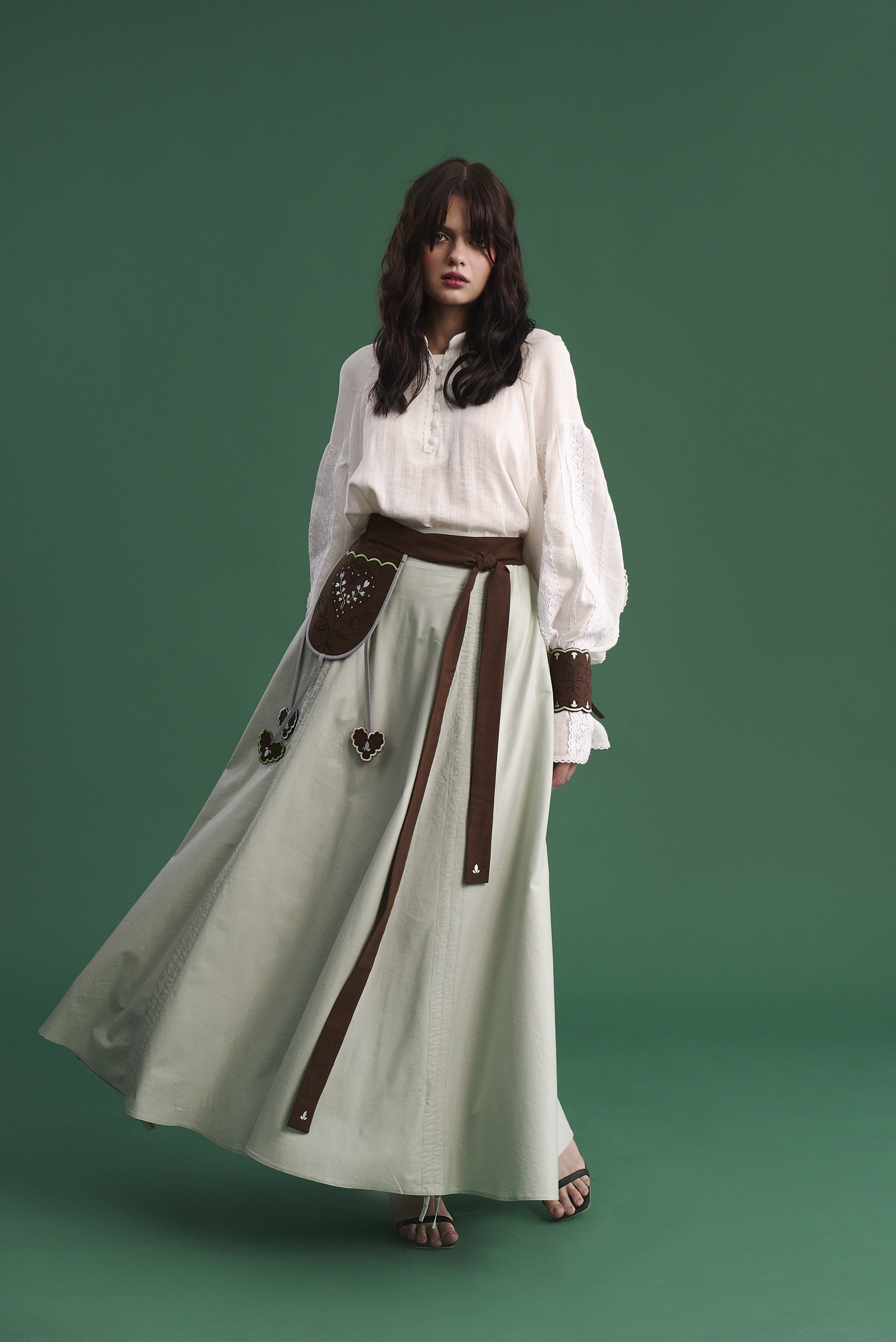 Спідниця довжини максі виконана з льону-тенселу у кольорі «фісташка» - втілення елегантності та витонченості. Вона виготовлена з натуральних матеріалів, що надає вам комфорт і свіжість протягом усього дня.