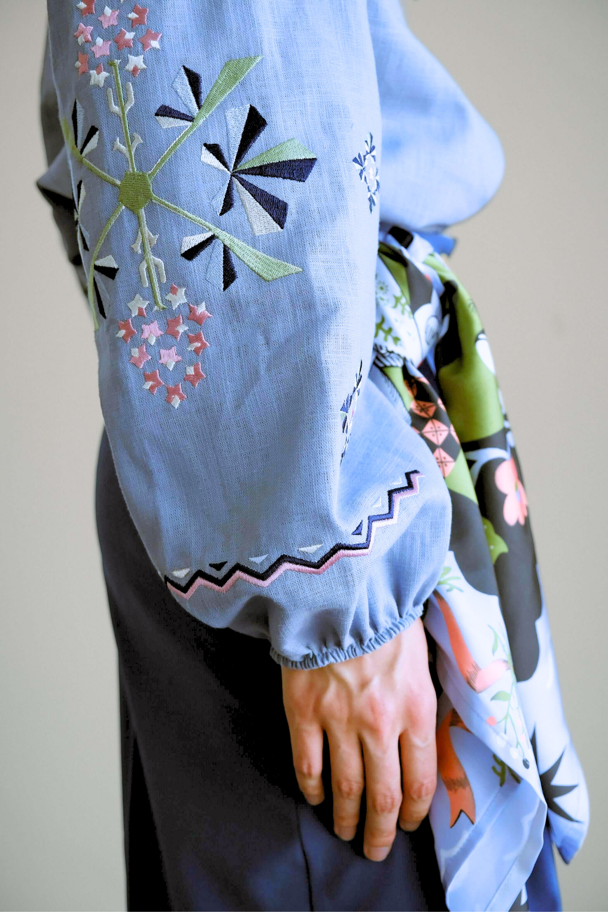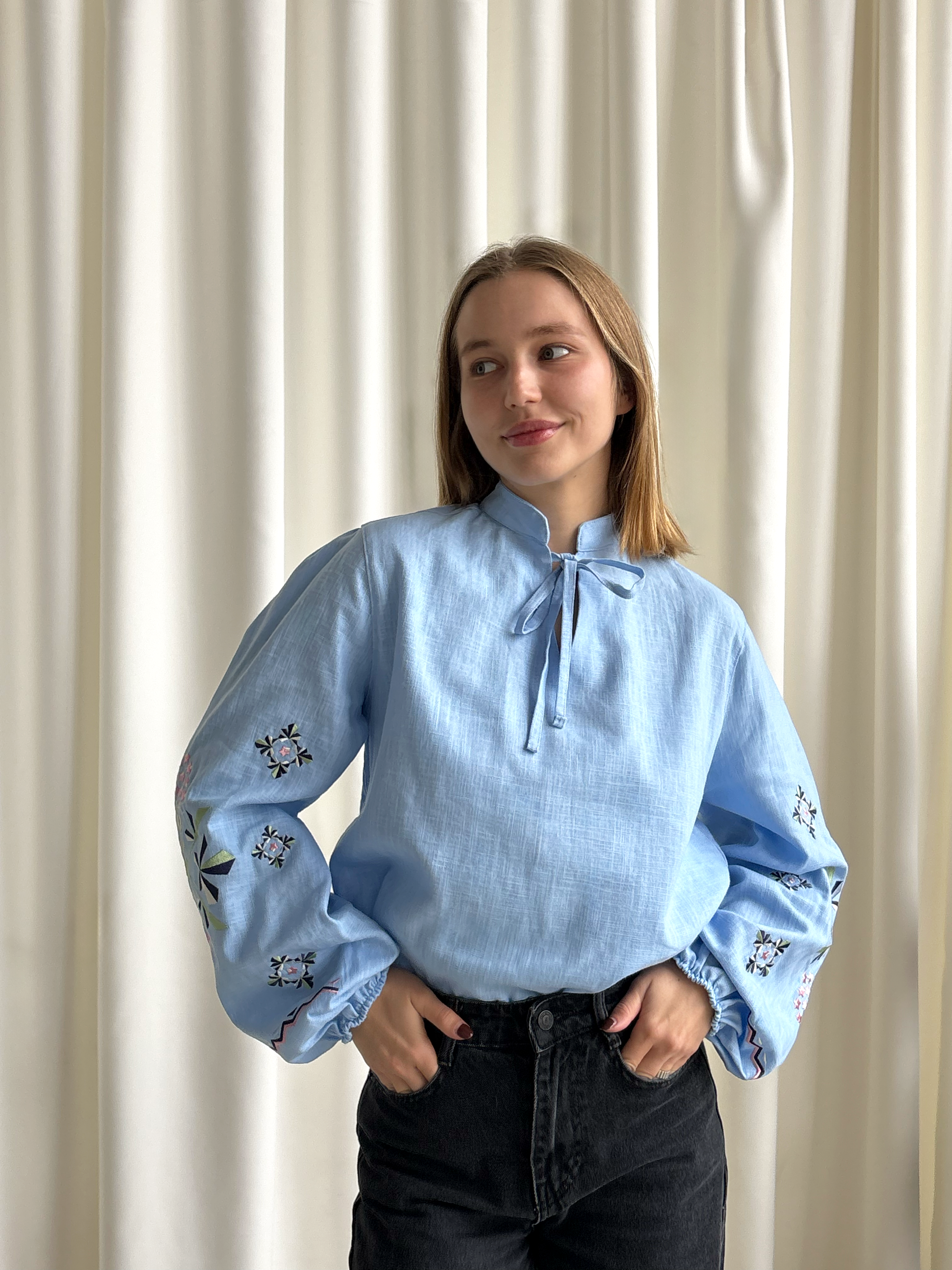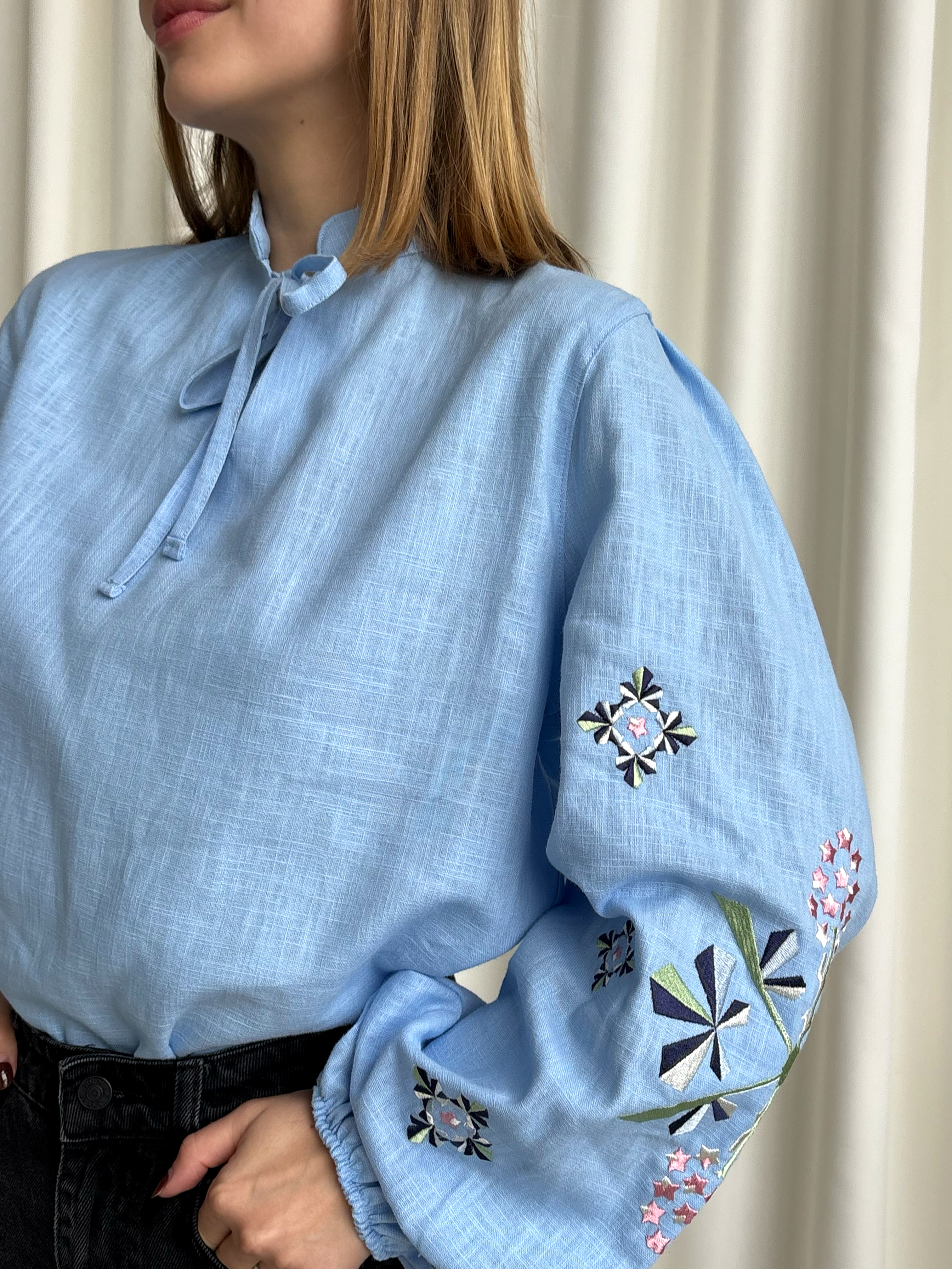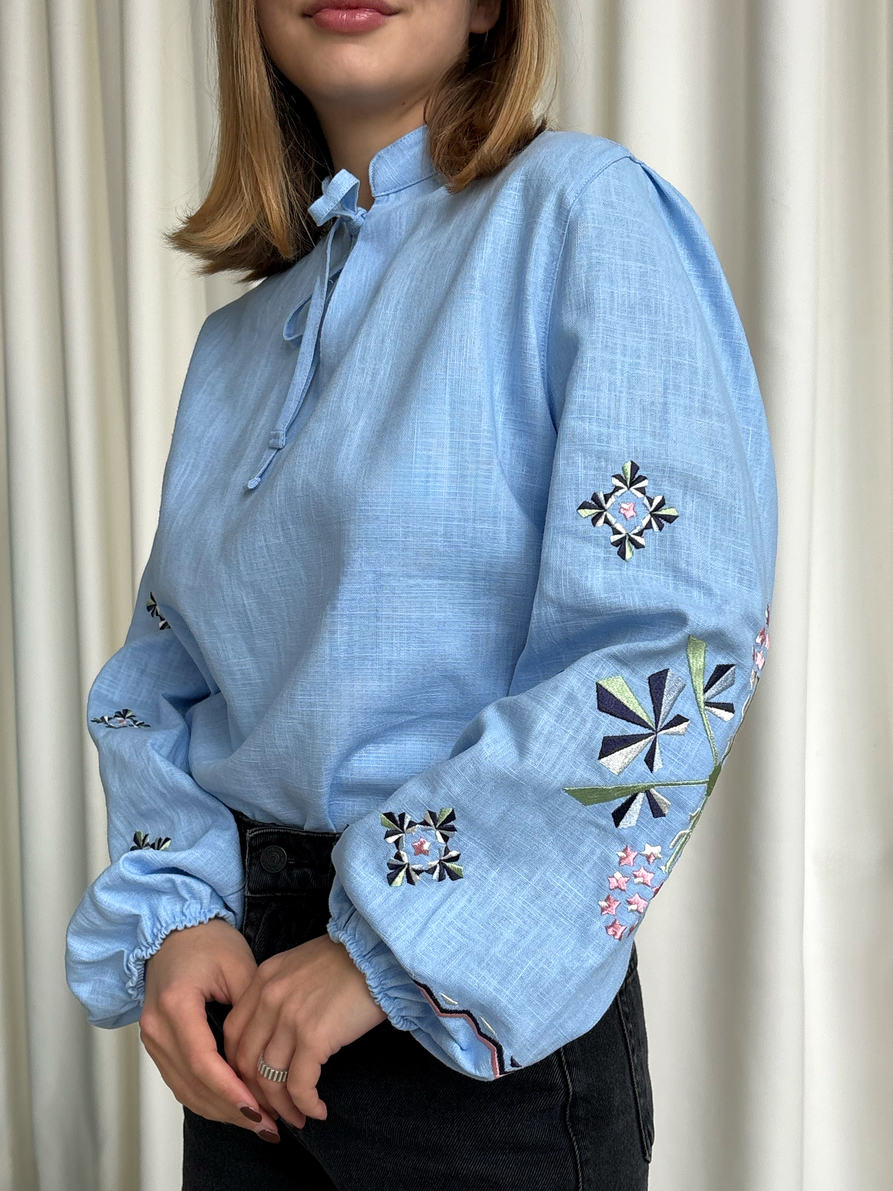 Жіноча вишиванка "Каштан" блакитна | Hrushenka